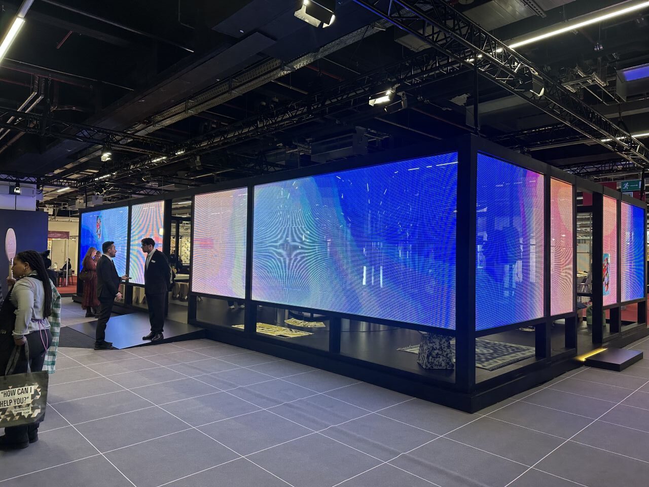 今年のトレンドブースは、1950年代に作られた 建築家フィリップ・ジョンソンの「グラスハウス」モチーフにしてデータセンターをイメージしたメッシュのLEDビジョンで囲まれた空間マテリアルフォームで紹介されています。